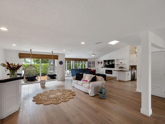 Beautifully remodeled Central Boca home in A+ SCHOOL DISTRICT. Located in a quiet neighborhood with NO HOA, this gorgeous home features an open and split floorpan with vaulted ceilings and skylight. The home boasts four bedrooms, three baths, a two car garage, a formal dining room and a large, flexible living space with open kitchen. The expansive master bedroom features his and hers walk-in closets and sitting area. Updates include new hardwood floors throughout, completely renovated kitchen and bathrooms, a custom built-in entertainment center with fireplace, new appliances, new hot water heater, new A/C, and custom window treatments (including blackout shades) throughout. This home is situated on an oversized lot and boasts a beautifully landscaped yard,
