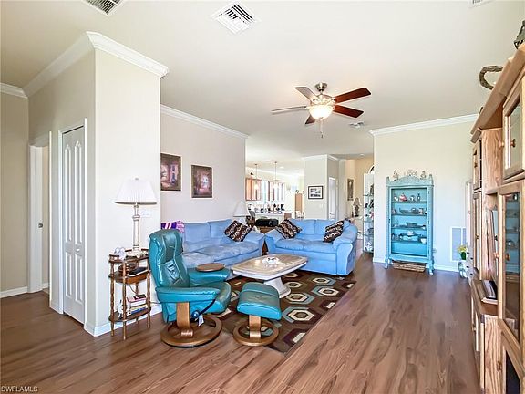 Beautiful ranch style home overlooking the lake with dozens of upgrades for this 6-year old house in The Forum, Promenade West. Lennar's Capri model is well appointed with crown molding in common areas, tile in wet areas, wood in common areas and w/w carpeting in bedrooms. Open concept kitchen features solid wood cabinets, granite countertops, backsplash, stainless steel appliances (inc new refrigerator in 2019), and eat-in dining area. The lower cabinets all have pull out drawers for ease of use and maximum storage. Paver driveway and walkway. The house has year round hurricane protection for all of the windows, front entry and lanai. A new AC unit was installed in 2018, exterior of house painted 2019. Promenade West is gated, low HOA fees, convenient to shopping, dining, airport, beaches and I-75.