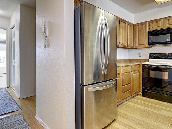Alaska Landings is located near the Anch Intl Airport area, which employs appx 9000 workers, and offers a convenient location to live. It has exceptional sound insulation for energy savings, triple pane windows & comfortable living. This 2nd flr unit has recent updates, and a prvt bath off the Master Bdrm. The Kitchen is open to the Dng, Lvg Rm & Deck w/ views overlooking the courtyard & Gazebo.Washer & Dryer are located inside the unit, a new refrigerator was purchased in 2019, and 3 new contemporary ceiling fans installed. The boiler inside the unit has recently been serviced as well. Carpets will be professionally cleaned upon move out. There is 1 assigned parking space in front of Bldg C entrance and a detached single space heated garage across from Bldg C. Garage has 2 remotes included. This unit is move-in ready!