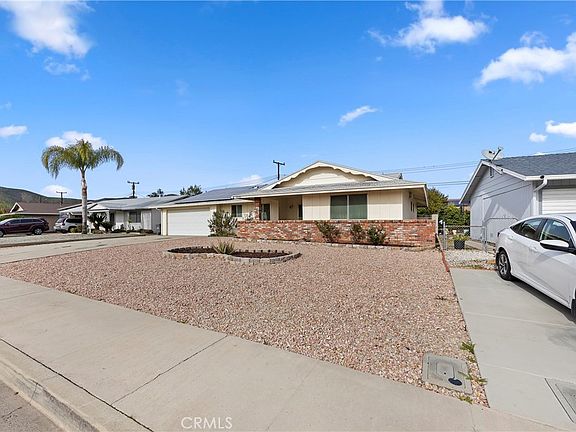 This beautiful and spacious Sun City/Menifee home located in a 55+ community has lots to offer for active individuals. The remodeled kitchen provides granite countertops, plenty of cabinet space, walk in pantry and tile flooring. It’s smart floor plan boasts an adjoining formal dining area and formal living room and an oversized family room that provides direct access to the relaxing back yard. The fruit bearing trees and quiet patio area is sure to make you feel right at home. The master bedroom has fluffy carpet, a walk-in closet and a master bath that has a new vanity and fresh paint. The second spacious bedroom has laminate flooring and a walk-in closet. Guest bath is roomy and classy with a chandelier and a Victorian style vanity. This home is sure to be a hit for both him and her. The two-car garage also provides golf cart parking and a hobby/craft room with a ¼ bath. Newer air conditioning unit and leased solar will help offset the high cost of power. This home is located in a wonderful HOA community with social clubs, activities, outdoor sports that include pickle ball and at a low monthly cost of less than $50. Home is located near to markets, restaurants, medical offices and shopping centers.