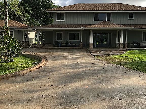Enjoy the splendor of Kauai's North Shore and all it has to offer from this private and tranquil home in Kalihiwai Ridge. This desirable neighborhood is located just minutes from the quaint Kilauea Town and secluded Kalihiwai Beach. The property offers stunning views of the Namahana Mountains, four acres of a private and well-established tropical landscape, and serene pastoral views on two property lines of the adjacent Silver Falls Ranch property, which encompasses 300 acres. The spacious residence features an open floor plan with bright great room, full bath and kitchen with screened lanai on the upper level with breathtaking views in every direction. Relax in comfort on lanais overlooking your private gardens. The home features separate entrances for the two downstairs bedrooms, a large laundry room with new counter tops and fixtures, and covered lanais around the ground level perimeter. Recent upgrades and remodel in 2020 throughout house include new roof, new garage, electrical devices, new plumbing fixtures, new flooring, and solid quartz counters. A separate ohana is ready for family and guests, permitted 400+ sq ft, with shower/toilet/sink, kitchenette, ipe floors, balconied decks, air conditioning.