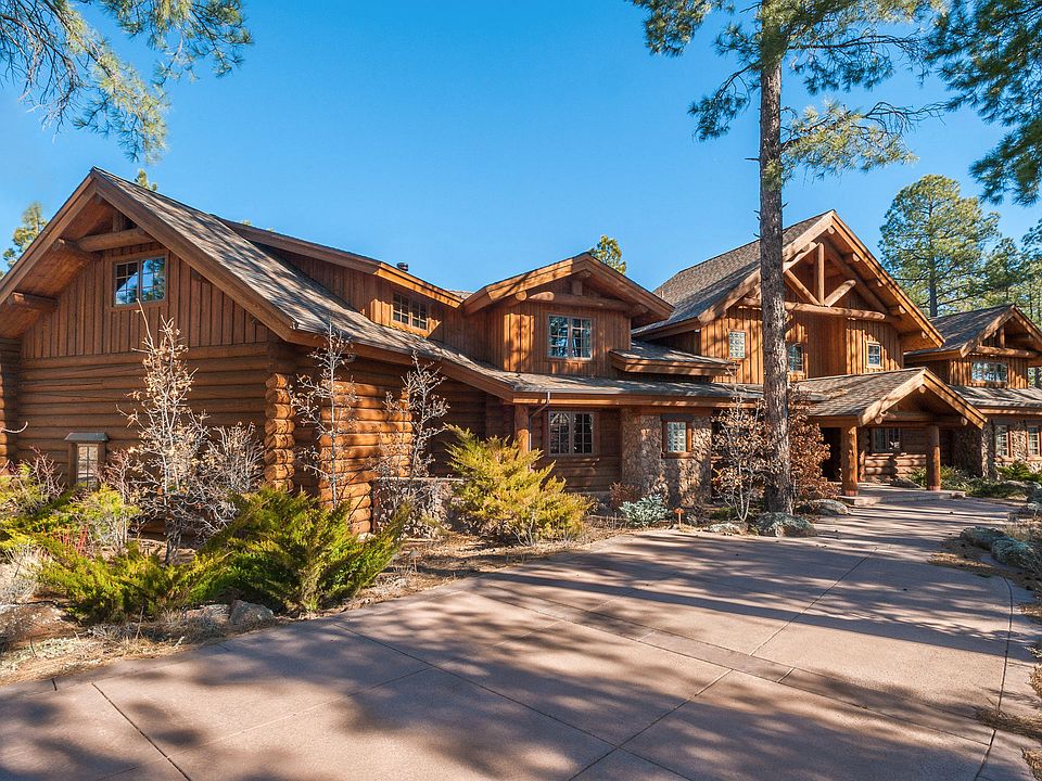 Welcome to this magnificent Log Luxury Retreat at Forest Highlands. This incredible, handcrafted custom home is perfectly situated on 1.43 Acres of tall pines with stunning fairway and San Francisco Peak Views. Meticulously crafted with Rocky Mountain Logs and designed by Kibo Architecture this amazing property features a modern, open concept with luxurious rustic details. This truly is a ''One Of A Kind Property''. Everything about this home has ''Wow'' factor! From the spacious great room with it's wall of windows, floor to ceiling rock fireplace, intimate second fireplace seating area and wood floors, not one detail has been overlooked. Click more for all the details