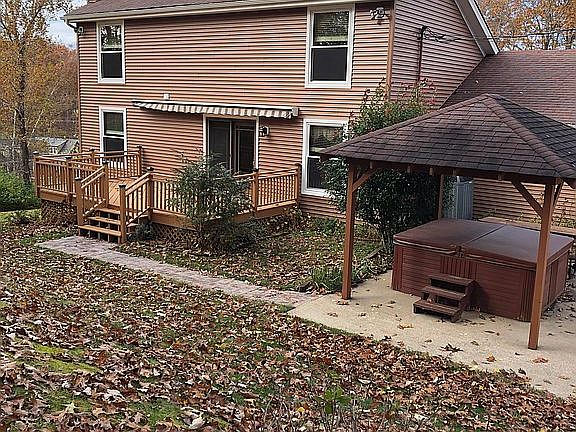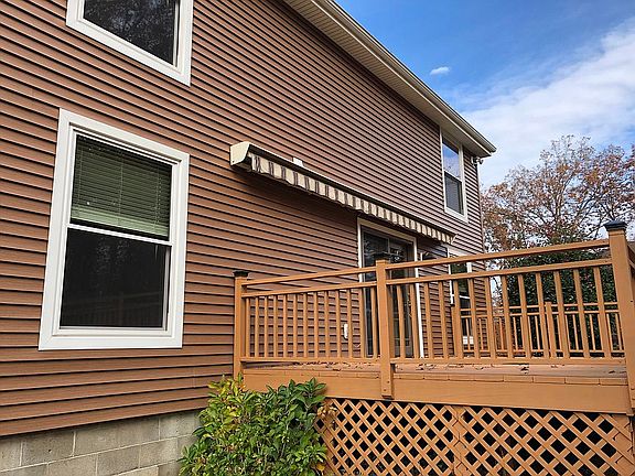 Two story beautifully decorated home located on a corner lot with an additional lot included. 4 bedrooms, 2 baths, living room, dining room, eat-in kitchen, lots of closets and storage, family room on finished side of basement, 2 car attached garage, back deck with motorized deck awning, back patio, and storage building. Lovely landscaped yard with fence. Beautiful kitchen with oak cabinetry, pullout shelves on all lower cabinets, and granite countertops. Cathedral ceiling in living room and entrance foyer and balconies. Decorative gas heating stove in basement. All window treatments stay. All exterior doors have been replaced and all windows replaced with double hung vinyl windows that tilt in for easy cleaning and wood trim around interior of windows stained to match trim in the house. Wired alarm system with heat sensors in kitchen and basemen, motion detectors at front door and in basement, and 4 keypads.