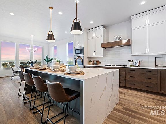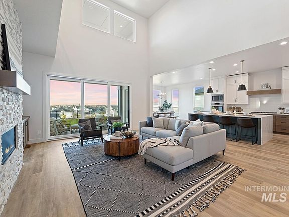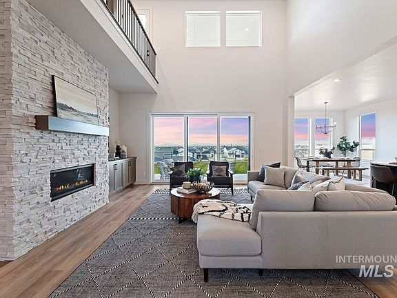 This incredible rim lot has unobstructed views of the Boise Foothills. The curb appeal of this Tablerock floorplan has been totally enhanced to not only impress, but also to create stunning views of the mountains and city throughout the home. Step inside to the towering ceilings with natural light pouring in from the tall windows. The main level features a guest suite, office, and gorgeous master suite with views over the Treasure Valley. The chef’s kitchen opens to the great room with a statement piece fireplace. Head upstairs where every bedroom gets to benefit from views out the front and back of the home. The home has so many highlights, but it’s hard to not get caught up in the awe-inspiring views from the covered balcony! Enjoy access to all of Sky Mesa’s amenities, including two infinity-edge pools and miles of walkable paths all in one perfect location. Home is ready now!