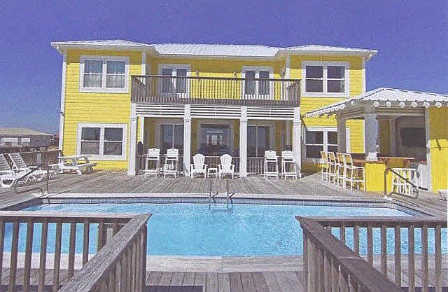Luxury 6 B/R 5 1/2 bath Gulf Front Rental machine (Gross 2015 rentals,$180,000).This house is rent ready and furnished with approx $150,000 worth of furniture, electronics, kitchen supplies and outdoor furniture. Kitchen has 2 refrigerators, 2 ovens, 2 dishwashers and a center island. It sleeps 20 people comfortably. The outside of the house has a full size pool and a cabana bar. ALL decks, over 3000 sq ft, are constructed out of Brazilian Walnut, which has a 75 yr life cycle.