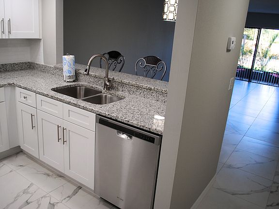 First floor condo with a very desirable design. Everything is fully updated. Brand NEW stainless steel appliances, NEW plumbing valves throughout, NEW porcelain, marble looking tile in the living/dining room and kitchen. Bedrooms have gray wood looking title. You will love this modern style! Newer A/C and newer water heater. NEW wood kitchen cabinetry with soft-closed features and high graded granite counter tops. Gated community offers a nice club house with a gym, pool, racquetball court, playground, barbecue grills and doggie stations. . Great location, walking distance from shopping, restaurants and just 10 min from the Beach and about 1 hour from Orlando. What a great opportunity either for snowbirds or just for someone who needs a cozy, easy but very comfortable place to live.
