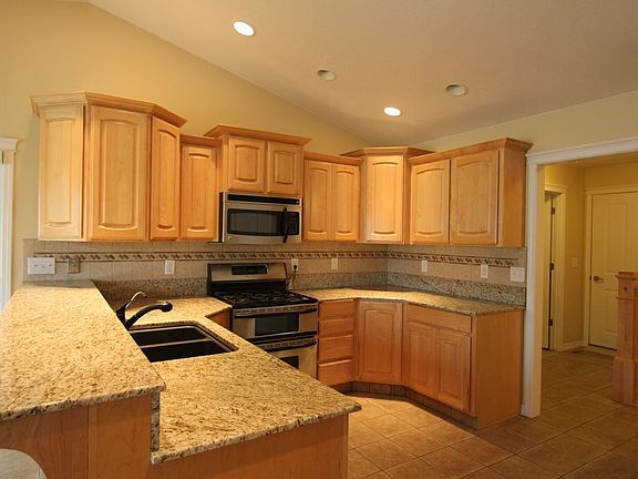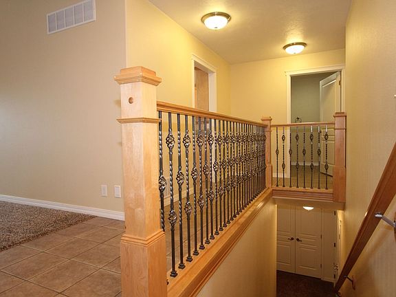 Well Maintained and Quality Built Highland Home. This beautiful Home features 5 bedrooms and 3 bathrooms in a spacious 3750 square feet. Entry shines with iron railings and tile floors. Vaulted ceilings through the great room and kitchen area and raised tray ceiling in master bedroom. Gas fireplace. Kitchen features granite counter tops and maple cabinetry, double oven with gas range top. Granite composite sink and stainless steel appliances. Laundry features folding counter, deep basin sink and the washer and dryer are included! Basement features two bedrooms, a large family room wired for surround sound, full bath, and a craft/office area with exterior entrance. Large painted 3 car garage with pull through 3rd bay onto the secluded covered patio that also has a BBQ gas stub from the house. New storage shed recently built in the back.