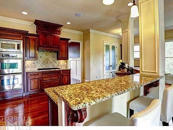 Gorgeous 6BR/5BA home in popular Stonegate at Ivy Creek. Built on a large, partially wooded, 3/4 acre lot, this stunning property features a 3-car garage along with a full finished basement, complete with an awesome Theater and Wet Bar/Kitchen. The FR features a 10+ ft coffered celing, and the gourmet kitchen and keeping room will make all your friends jealous. Other features include hardwoods throughout the first floor, 2 fireplaces on the main level, an ENORMOUS master suite, elegant master bath and large media room upsatirs. This house has all the bells and whistles!