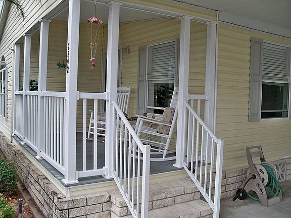 2 BR 2 BA 1350 SQ. FT. home with open floor plan features beautiful landscaping, 7 X 13 Front porch, 9 X 12 Golf Cart Shed, 12 X 26 Carport with 12 X 30 Driveway, 5 FT Golf Cart Path and 2017 Roof. Inside Laundry with newer washer and dryer, 12 X 13 FL Room with air, Textured Walls, Larger Kitchen with Island, Large Bedrooms , And 13 X 21 Living room. Have to see to appreciate this one.