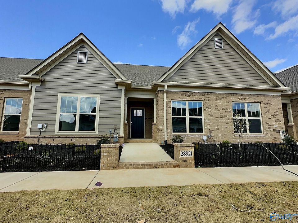 Under Construction-The Rose Floor Plan. Brick & Hardiplank construction townhome. One level. 2 car garage. 9 ft. ceilings, rounded corners, Linear FP w/built-ins, custom built kit/bath cabinetry, under cabinet lighting, backsplash, kit island, Quartz in Kit & Baths, 7" Crown molding in Common areas & Master. w/ 5" throughout rest , Hardwood throughout, Master & WIC, Secondary Beds & closets. 16'x16' attic storage. Pocket Door to Master WIC & water closet. Custom tub. Rainhead, dual shower, & tile to ceiling heads in Master. Tile tub surround in guest bath. 240V Nema 14-50 outlet in garage. Wainscoting in foyer. Built-ins in pantry & WIC. 2" Faux wood blinds