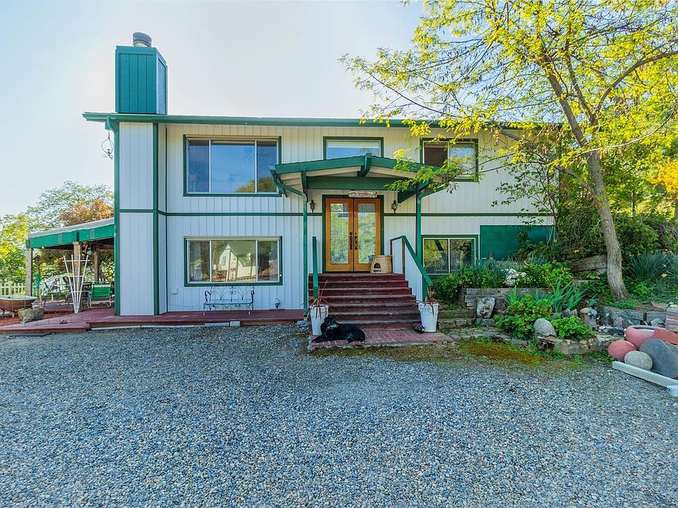 Looking for that private get-away home that offers paved road access, beautiful views and several fenced yards?Look not further than this Midwestern style tri-level home w/the master bedroom, LR, DR & kitchen upstairs and a family room and 2 bedrooms downs stairs.The kitchen opens to a large DR and LR and then onto a deck to the views. Wake up in the recently remodeled MB onlooking the natural outside beauty through the bay window w/French door and then open the gorgeous custom barn door to the beautiful remodeled bathroom.There are windows to the views all over and beautiful Hickory wood floors. Downstairs is a family room that has an alcove that's perfect for a home office. There's a slider leading to one of the several fenced sitting areas outside. There's a remodeled bath, laundry rm and 2 bedrooms as well. One shed has a wall A/C for workspace and there is a chicken coop too.