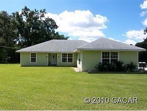 Amazing 4BR/2BA Contemporary Home built in 2005 on a 12-acre lot. Enter this paradise through a private road lined with pine trees. This concrete-block home features a 3-way split floor plan, open kitchen with ceramic counter tops, open living area, breakfast bar, vaulted ceilings; luxury bath off master bedroom. Just minutes from freshwater Ginny, Poe and Blue Springs, and Santa Fe River. 15 min. from Gainesville about 20 min. to the University of Florida.