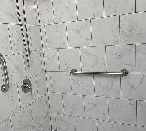 • Accessibility features: Roll-In Shower, No Stairs, Level Entry - Main, 32"+ wide Doors, 36"+ wide Halls, Doors - Swing In, Doors - Lever Handle(s), Entry Slope <1', Accessible Switches/Outlets, Grab Bars Mod, Roll-under Vanity