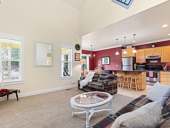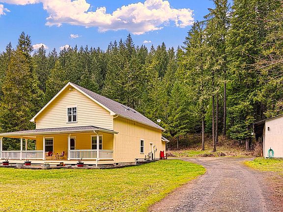 Secluded property that comes with a charming modern farmhouse AND a huge shop. This property offers privacy and country living at its finest. Enjoy amazing wooded views from the covered front porch. The interior of this 2005 built home has vaulted ceilings and a great room that creates an open, airy feel with plenty of natural light. Main level primary bedroom has a walk-in shower. Bonus room upstairs could be theater room, family room, or huge home office. Large shop has tall ceilings, wood stove, 10' roll up doors, overhead chain hoist, 220 electrical and shop sink. Large covered parking area can fit RVs, cars, trucks, boats, equipment, tractors, wood splitter and more. Hike or ride on BLM land right out your back door, property is surrounded on two sides by BLM. 10 by 20 garden shed with covered concrete patio. Detached art studio w/French doors. Peaceful and secluded location and an easy drive of only 15 minutes to Creswell.