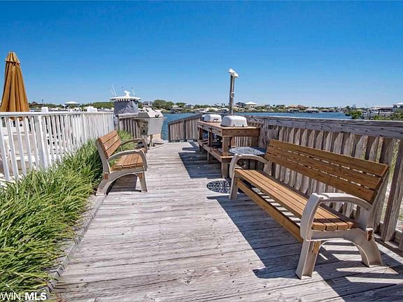 4 Bedroom 3 Bath ground floor unit that was completely updated in 2017. Step off your balcony on to the pool deck, or out to your Deeded Boat slip with lift and hit the snapper reef. Very cool floor plan with separate living area that includes a living room, 2 bedrooms with bath and wet bar. The main living area overlooks old river and there are an additional 2 bedrooms and 2 baths. 1/2 mile from the FloraBama Sold furnished other than the Owner reserves family pictures. Assessment to be paid by seller before closing the assessment will replace and repair the north side of the building