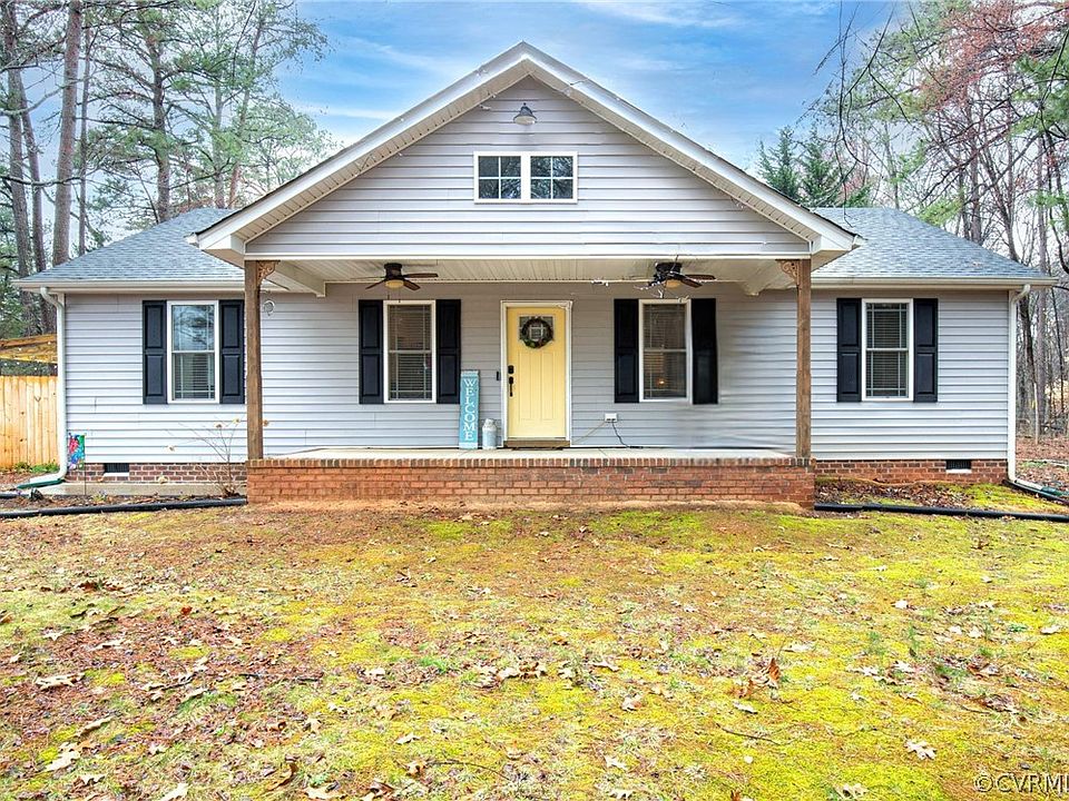 Charming ranch centrally located in Powhatan! This well-kept 3 bed 2 bath home built in 2016 is ready for it's new owners. Vaulted ceilings and beautiful flooring welcome you into the spacious open living area. The kitchen offers painted cabinetry, stainless appliances and plenty of room for cooking. The master offers new luxury vinyl plank flooring and a huge walk-in closet. Luxury vinyl plank flooring installed in the spare bedrooms. Large mud room with it's own entrance is great for keeping those muddy boots out of the main living area. The private back yard is already fenced in for the animals. A covered outdoor area currently used as an outdoor kitchen is perfect for entertaining. Nice mix of mature trees and open space in the back yard for your gardening and animals. The 8'x12x shed in the back yard for your lawn equipment or extra storage. Very convenient location with high speed Xfinity internet onsite.