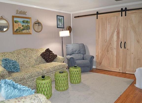 Nice Ranch home with character, 2 outbuildings, 1.5 acres, and located just outside of town. Home has a large sun room (or 3rd bedroom) with lots of windows and a propane fireplace. The living room is extra large with a beautiful brick wood burning fireplace for those cold nights, wood sliding doors to the sun room and wood flooring. The master bedroom is just off the bathroom and the kitchen is spacious with all stainless steel appliance staying. The second bedroom is going to be completely redone so you can pick out the colors and carpet. New Roof is going to be put on. The 2 car garage has a lein-to and the outbuilding has electric and a concrete floor. Quiet, Secluded and full of charm.