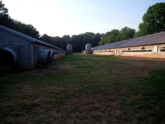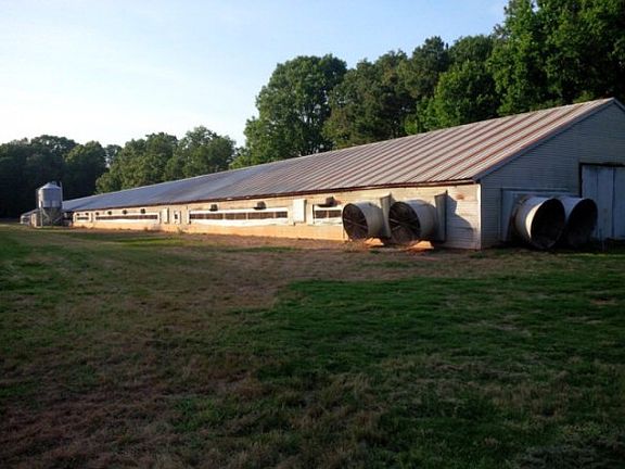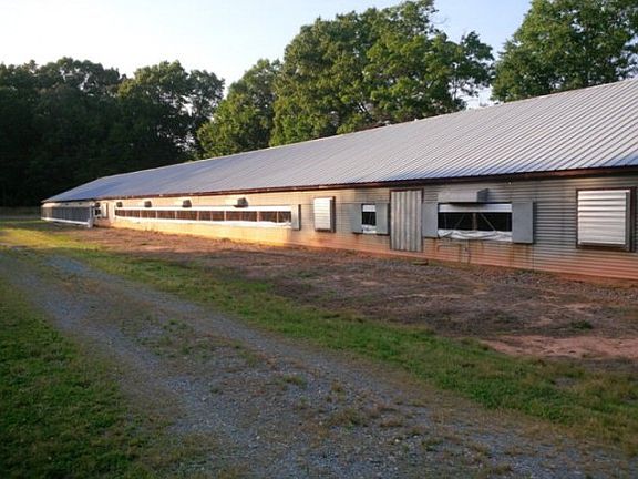 10 ac with two (2) 40â x 500â clear span Chicken houses. Last used approximately two yrs ago. Updated at that time. 40â x 60â Dry Stack with concrete floor. Well is 300 ft and produces 20 GPM. Auto Start 100 KW Generator in place and 2 feed bins per house.