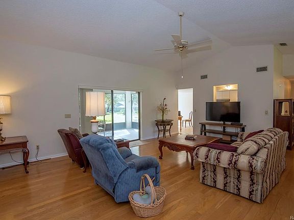 Spacious Great Room home in move-in condition. 3/2/2 features Great Room with Wood flooring, formal dining, kitchen with nook. Master bath with double vanities and handicapped accessible shower. Doors throughout 36". Ft. bedroom has alcove which can accommodate desk. Screened porch overlooks stone paved patio and big backyard with fenced area for pets or garden. Minutes from Inverness Golf & Country Club, bike trail and downtown.