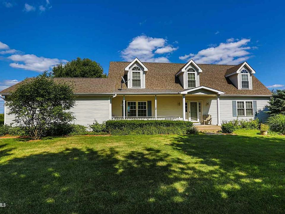 This Classic Country Cape Cod sits quite stately in the middle of a 1+/- acre homesite with mature landscaping and panoramic views of the distant hills and Village of Elizabeth from the rear deck. Built in 1998, it has since then had new roof shingles, replacement of fogged windows, an additional main floor laundry, and in 2018 the addition of a new furnace, central A/C and granite counter tops in the kitchen. This 3 bedroom home also features a main floor master suite, private dining room with French doors, a large portable electric fireplace in the living room (which can be used in dining room or family room as well),cultured marble window sills, large bedrooms on upper level, and a full partially finished walk-out lower level with windows and French doors for office, exercise, utilities and game room space. Now in move-in condition. Taxes based on OOE and SCE.
