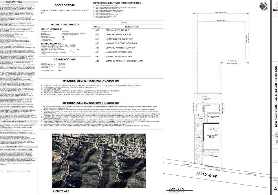 Large .434 Acre (18,915 SF) on Paradise Rd in Custom Val Verde area in Castaic, CA - SEE Proposed Plans for 1 Single Family House with approx 2,200 SF (plus attached garage) PLUS 1 detached ADU ("Accessory Dwelling Unit") just under 800 SF. Seller will consider owner financing to Buyers providing at least 50% cash at closing. All information and representations regarding square footage, dimensions, zoning, building requirements, utilities,etc. to be independently verified by Buyers and/or Buyers' agent with county authorities and relevant utilities.