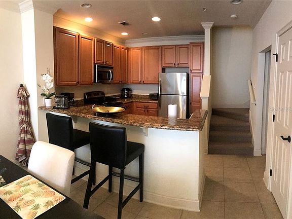**** Back in the market!!!! Due to Financing**** Beautiful, impeccable, luxury active vacational townhouse in Waterstone Courtyard Villas. Mediterranean architecture defines this retreat. This townhouse offers an open floor concept, 9 ft ceiling, with 3 bedrooms and 2 bathrooms. Master Bathroom downstairs - features a jet spa, 2 separate sinks, granite counter top, mood light and French doors towards the courtyard. The kitchen is open to dining and living area, with granite counter top, stainless steel appliances, and 42' wood cabinets. The 2 bedrooms upstairs are spacious with a lot of natural light! Located just minutes from Disney and shopping areas. It is a MUST SEE. It is a great opportunity for investors and first-time buyers. Investors can have as a Short Term Rental or Long Term Rental investment.