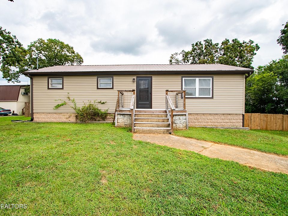 This is a lovely 3 bed / 1 bath, updated and remodeled home with large basement / garage combo. The 3rd bedroom entry point is through the second bedroom. Kitchen has new appliances and granite countertops. The previous back patio was converted to a nice den/entertaining area. There is new siding and rain gutters, and the back yard is all fenced in with a small deck and firepit for family enjoyment. The large basement has a garage and door entry point and stairs leading up to the kitchen.