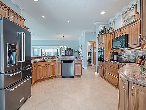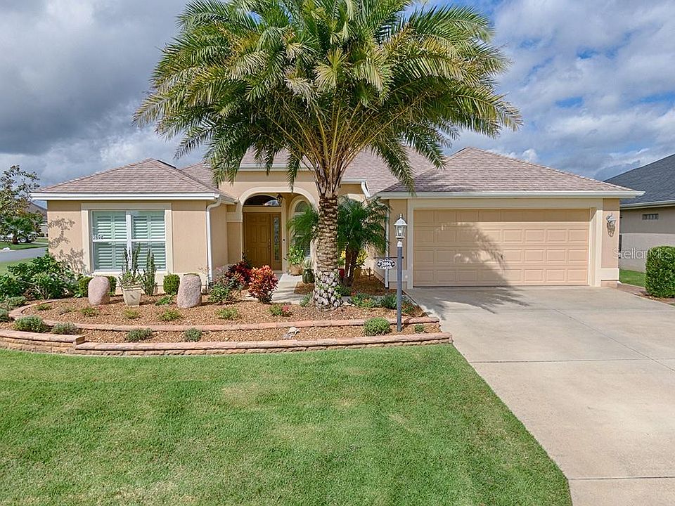 Gorgeous TRUE 3-Bedroom Stretched GARDENIA w/Tremendous Curb Appeal in PINELLAS! AMAZING Location, CORNER Lot on a Cul-de-sac Street AND the BOND is PAID!! Fabulous ENGINEERED HARDWOOD and TILE Throughout (no carpet). HAND-FINISHED VOLUME CEILINGS (no popcorn). The 300-square-feet GLASS-ENCLOSED Lanai is under HEAT & AIR and effectively adds to the LIVING SPACE bringing the TOTAL to 2256 SQUARE FEET! The LANAI is also PRIVATE due to the Privacy LANDSCAPING Behind, and has Custom Blinds. Beautiful 18' TILE on the DIAGONAL in the Kitchen and Entryway. The Kitchen is STUNNING and Features Beautiful Raised-Panel WOOD Cabinets w/Crown Molding, Five-Drawer KitchenAid Refrigerator ($3k New), a Wall Oven, KitchenAid Dishwasher, Gorgeous TILE BACKSPLASH, Stainless Sink, Fabulous High-Definition Laminate Countertops w/Beveled Edge, and the front of the Breakfast Bar has Custom Framed Woodwork. There are also PLENTY of PULL-OUT Shelves and UNDER & OVER Cabinet LIGHTING. There are CUSTOM WOOD CORNICES above the Front Door and the Sliders to the Enclosed Lanai. The Large Master Bedroom is Gorgeous w/Hardwood Flooring, CROWN MOLDING, PLANTATION SHUTTERS and TRAY Ceiling. The En-Suite Master Bath has DUAL Sinks w/UPGRADED Faucets & Lighting, Beautiful ROMAN Shower w/GLASS BRICK for SOFT, NATURAL Light, and a Privacy Commode w/Pocket Door. BOTH Guest Rooms have CLOSETS, Hardwood Flooring and PLANTATION SHUTTERS. Pocket door provides privacy for guests. INDOOR LAUNDRY w/Plenty of Cabinets for STORAGE. Garage is DEEPER and has an EPOXY-Coated Floor as well as PULL-DOWN Attic Stairs. Whole-House WATER SOFTENER. You DEFINITELY WANT to SEE This Fabulous Home in an Amazing Location! Some Furniture available separately. (Guest bath shower curtain does not convey.) You'll be just 2.5 miles from Brownwood Paddock Square and just minutes from Lake Sumter Landing. Also close to Pinellas Plaza Shopping/Dining/Banking, The Villages Health Pinellas Care Center, Big Cypress Rec Center, Evans Prairie Golf & CC, Eisenhower Rec Center and much more! Tax line reflects property taxes only. BOND is PAID! Maintenance Assessment is $816/year. Fire Dept. $124/year. Note: Square footage information is taken from the Public Record and is deemed reliable, but not guaranteed. Room and garage dimensions are approximate: buyer to verify.