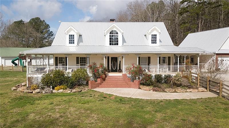 Welcome Home! Beautiful 4 bedroom 2.5 bath home situated on 12.34 acres in Dawson County with attached 2 car garage. Private, gated entry with gently rolling/level usable land! Open floor plan, beautiful kitchen, SS appliances, granite counter tops, heated tile floors in master bath, amazing views. Tank-less hot water heater, whole home generator, new gate, roof 5 years new. In ground pool with slide (5 years new), Pool house, 5 bay shop/garage, 3 bay garage with rv space, RV shed, and other storage buildings on-site. In-law/teen suite/apartment over garage. Must See! Home is on public water, well on site for irrigation. Plenty of room for storage or animals on this property.
