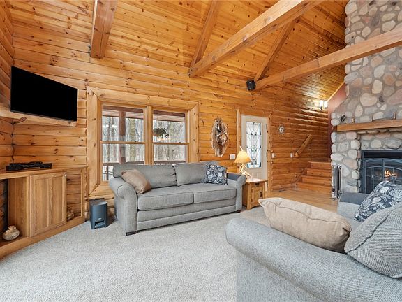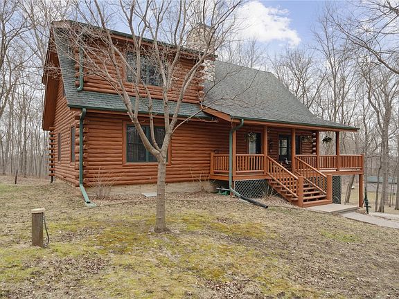 Your secluded retreat is situated on nearly 7 timbered acres. Built by Kalona Amish craftsmen, white cedar log exterior covers frame construction, with pine log interior, providing R21 wall insulation value. Custom built cabinetry in kitchen and bathrooms. Handsome, beamed, vaulted ceilings. Woodburning, stone fireplace. Open floor plan for living area and 2 bedrooms, main bathroom and laundry complete the main level. Upstairs is the primary bedroom, walk-in closet and recently updated ensuite. Loft space currently used as office. Lower level offers large unfinished space for storage and could be finished for extra living space. Wrap around porch with log chairs creates a relaxing outdoor space. Or gather around the fire pit for cozy evenings. Drive under 2-car garage with storage closet. Wired for connection to portable generator. 26' x 30' detached, heated garage. House exterior recently stained. New firebricks and recently cleaned fireplace. Just 20 minutes from Marion/Cedar Rapids.