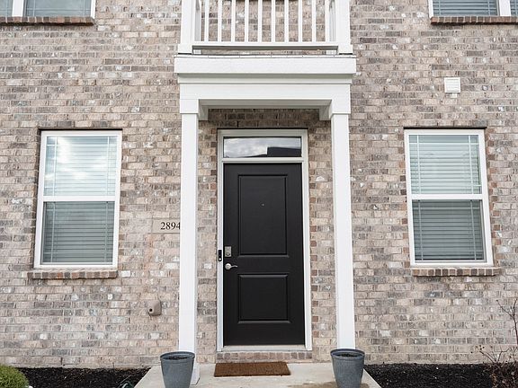 Improved Price! This spacious Bhrams floor plan offers over 2,000 sq. ft. of modern living with 3 bedrooms, 2.5 baths, and a 2-car rear-entry garage. The brick front facade with a decorative balcony adds charm, while the open layout features a stylish kitchen with a center island, quartz countertops, upgraded cabinets, tile backsplash, and a cozy nook. The Primary Suite includes a tiled walk-in shower, double vanity, and walk-in closet. Enjoy added convenience with blinds already installed throughout. The large patio provides outdoor space to relax and unwind. Community amenities include a clubhouse, pool, tennis and pickleball courts, a community garden, and more. Conveniently located just minutes from shopping, dining, and I-65.