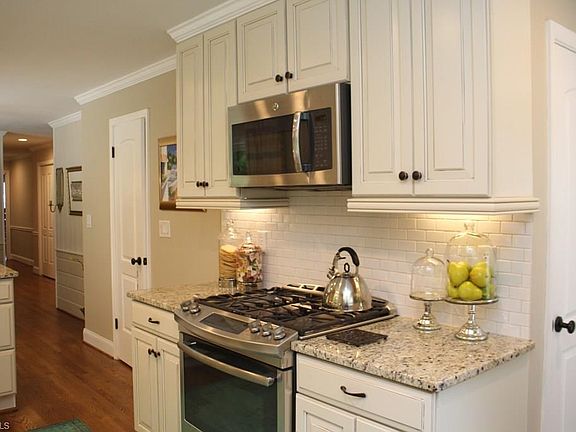 Completely redone! Fab kit w/granite, bfst bar, ss appl, includ 6 burner gas range, opens to large DR and 12x27 deck! Oversized LR w/frplc and picture window, both baths w/tile floor, new vanities and sinks, master suite w/new walk in shwr. Basement features gas log frplc, tons of storage, office, lndry/powder rm, and 1.5 car gar w/ new door and large work/storage area. Back yard w/lush landscaping, stamped concrete patio, new HVAC 2013, new H20 Htr 2015, new roof, 2014, new vinyl clad windows 2014!