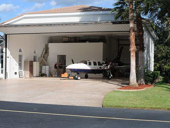 ''HARD to FIND'', Exceptional Spruce Creek Fly-In HANGAR Home with 3 Bedroom, 3.5 Baths and Office Area. Home features an Open Floor Plan, 12' ceilings, Crown Moulding, Tray Ceilings, New Outdoor Kitchen, New Pool Cage..The RECENTLY EXPANDED & UPDATED ''2,836'' Sq. Ft HANGAR is Dehumidified. Hangar Door is Hydraulic and measures 56'10'' by 15'3''..High End Epoxy floors in Hangar & Garage. Hangar has a Full Bath, A Huge Fan and a Separate Office Area. Heated Salt Water Pool with newer Pool Pump and Propane Heater. Open Views from the Family Room overlook the Pool Area and Outdoor Fireplace. Extensive Pavers on outside Patio, Outside Fireplace, Sidewalks, Hangar Apron and side Taxiway Access..Separate RV entrance, 50 Amp RV connection and RV dump station. Quality extensive Landscaping.