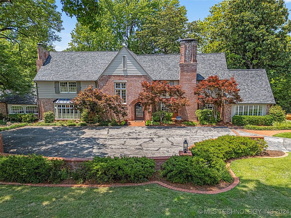 Designed in the syle of an 'English Country' estate located on a prominent, 1-acre lot adjacent to Philbrook. Land originally owned by Waite Phillips. Featured in John Brooks Walton's book, "One Hundred More Historic Tulsa Homes", this midtown home has been recently and professionally remodeled and updated, while maintaining its original, architectural details. 5 en-suite bedrooms, plus 1 half bath. New, oversized 3-car garage with air-conditioning. New designer kitchen by Kitchen Ideas with custom cabinetry, stained oak island, Thermador appliances, 6-burner gas range, double ovens, and Taj Mahal Quartzite countertops. Exterior updates to include new roof and guttering, and all new paint. New, high-efficiency HVAC. Imported French marble fireplace in formal living and marble vanity in powder bath. Tudor-style staircase with stately, oversized window on large landing overlooking front circle drive. Grand-scale first floor living spaces to include formals, club room with built-ins, separate game room, and sunroom/office. First floor guest room with private bath. Spacious, second-floor primary suite with two walk-in closets. Expansive grounds and fabulous landscaping offering privacy and park-like setting. Side-entry drive and rear garage.