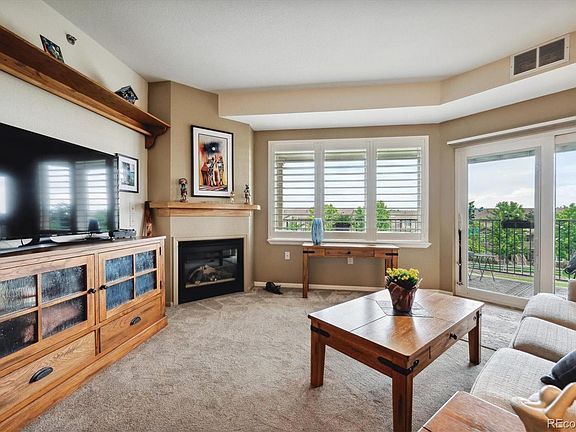 Welcome to the pinnacle of luxury living in Centennial at Riverwalk. This top-floor, golf course condo offers breathtaking mountain views and embodies the best of 55+ living. Step into a light-filled haven where an open floor plan and abundant windows create a bright and welcoming atmosphere. The updated kitchen is a chef's delight, boasting sleek granite countertops, a stylish tile backsplash, and newer stainless steel appliances. Modern conveniences like canned lighting and a pop-up faucet for filtered water add to the kitchen's appeal. The adjoining dining room features a built-in cabinet and counter, providing extra storage and enhancing functionality. Relax in the carpeted living room, where a cozy gas fireplace with a mantle sets the perfect ambiance. Enjoy uninterrupted views of the Littleton Golf Course and the majestic mountains right from your living space. The primary bedroom is a serene retreat, complete with a walk-in closet and an attached bathroom featuring a beautifully updated shower (2022). The guest bedroom and bathroom are thoughtfully positioned on the opposite side of the living room, ensuring privacy. A dedicated laundry room with a stackable washer and dryer, along with additional storage, adds to the home's convenience. This expansive floor plan, the largest in Centennial, includes an office/den with a closet, offering flexible space for your needs. Two covered patios provide outdoor living at its best—one, accessible from the living room, offers stunning golf course and mountain views, while the second, cozier patio is accessible from both the office and the primary bedroom. With heat and cable included in the monthly HOA fee, this home is as comfortable as it is stylish. Don’t miss the convenience of underground parking and easy elevator access. Make this stunning penthouse your new home today!