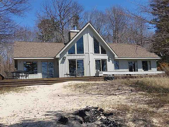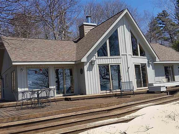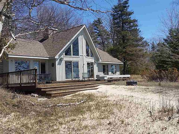 Absolutely beautiful, relatively new 1800 sq ft home with extensive decks on 200 feet of sandy beach frontage near the east side of Iron Ore Bay. This house and frontage comes with 12.5 acres of land. The inland hardwoods part of this property is about 11.2 acres with almost 750' of road frontage on the north side of South End Road. This Ron Wojan-built house has many, many special features and very high quality materials and workmanship that makes it one of the nicest lakefront homes on the Island. The house has two private bedrooms, with a full bath and Jacuzzi tub with the master bedroom on the lake side. A guest bedroom and another full bath are on the inland side but with views of the woods in two directions. There is also a semi-private sleeping area in the loft behind the living room. The house has a very expensive special, kitchen with a beautiful dining area on its lake side. Large living room with a lot of glass on the lake side and an absolutely gorgeous stone fireplace. Screened-in porch on the inland side; walk-in partial basement with a lot of open high crawl space for storage. In addition, this Parcel #10 is probably the most private spot of all of the lakefront parcels at Iron Ore Bay with the prettiest view along the beach toward the southwest with Cheyenne Point in the background. You will see sunsets from this home about six months of the year. You have to see this house to appreciate its quality, its woods and lake views from every room, etc. With the raw land value about $150,000, this house is priced right. Shown by advance appointment only.
