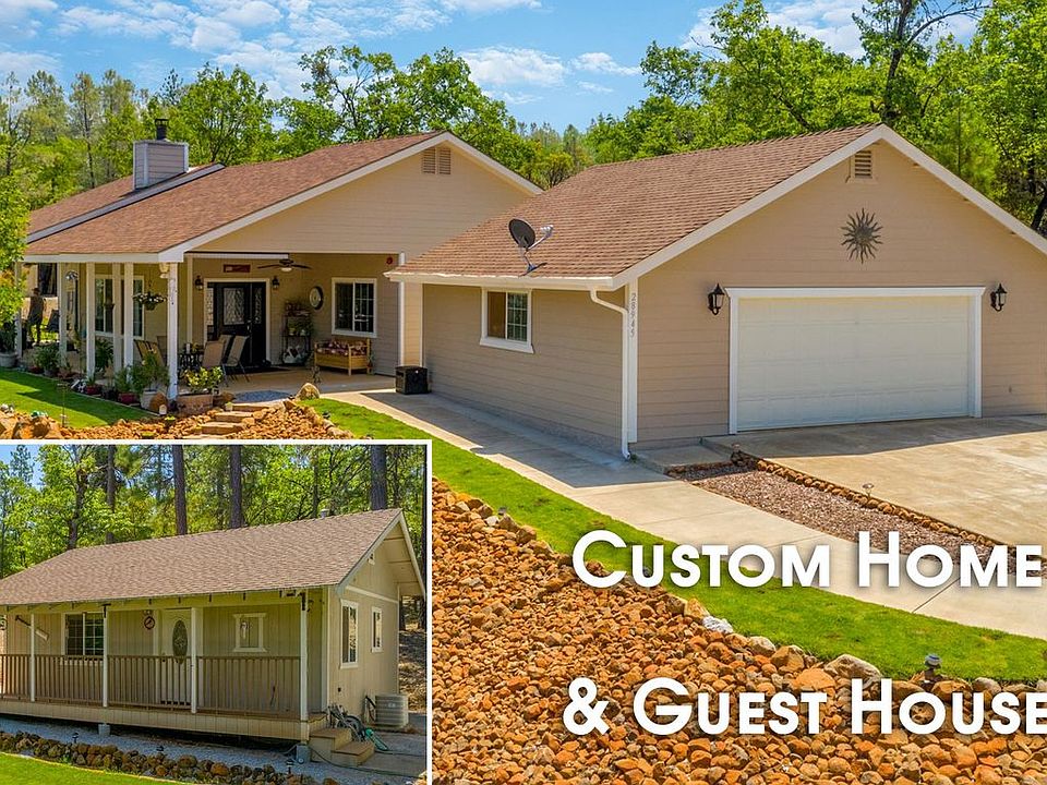 Amazing CUSTOM HOME with a GUEST HOUSE on over 5 acres! Featuring attractive flooring and fixtures throughout. Stunning kitchen complete with quality cabinetry and center prep island. Spacious living room and a beautiful fireplace. Relaxing master suite with walk in closet. Great landscaping, RV carport & storage buildings. Enjoy the covered patio & private setting. Fenced and gated entry.
