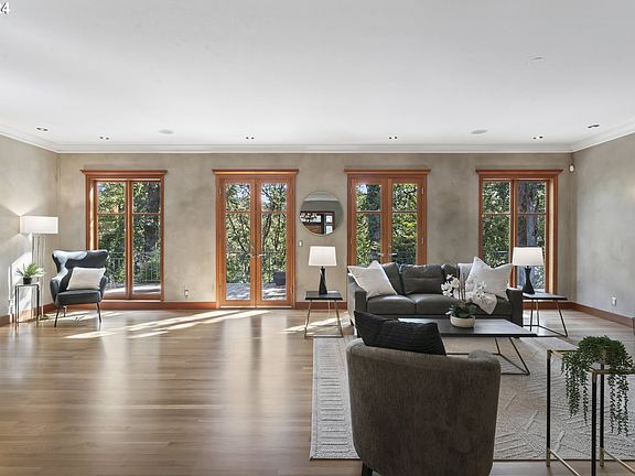 This one of a kind property in a private University neighborhood is located at the end of a wooded cul-de-sac on 1.69 acres with private trails, boasting views of Laurelwood Golf Course. Less than half a mile to Laurelwood Golf Course, and 1.47 miles to Hayward Field and UofO! The one-level, elegant home has been tastefully remodeled to create a graceful, classic feel with custom plaster walls, floor-to-ceiling Douglas-fir windows/doors, newly refinished hardwood and parquet floors, and more. An idyllic, secluded & private setting! Great video of house and location.