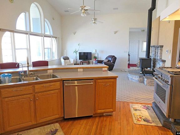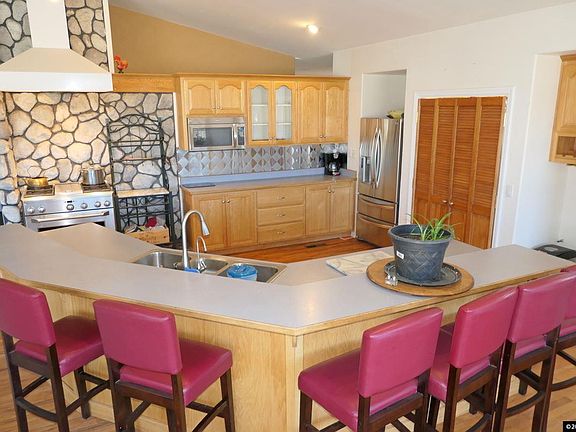Located where the pavement ends and public lands begin. Plenty of room for toys and places to use them. Excellent floor plan with Master and guest bedrooms on opposite ends of the house, private family room, huge kitchen with long breakfast bar in great room with large living and dining areas. Guest bedrooms 3-room bath is ideal for sharing. Family room is at the core of the guest rooms and opens to a private fenced in patio. Radiant floor in master bath