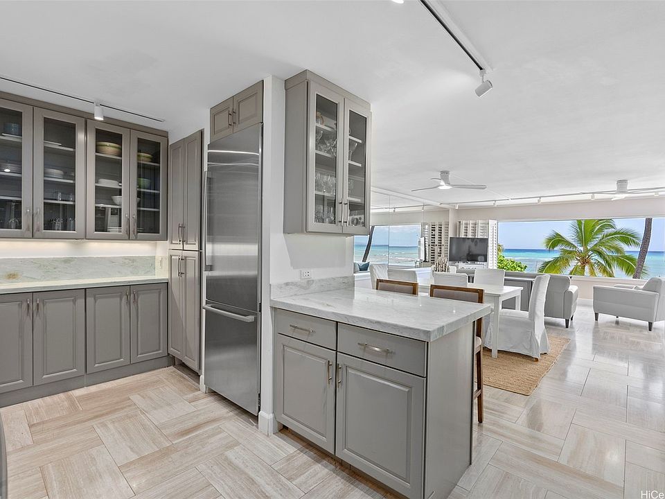 World Class Luxury Living on Hawaii’s Premier Gold Coast. The Colony Surf is an iconic beachfront condo on World-Famous Waikiki Beach. Rare corner end, ocean-facing ‘04 unit offers extra square footage, extra storage&expanded living area, beautiful side window. This residence has been renovated to the nines with no expense spared. Custom Kitchen with Bosch stainless steel appliances &washer&dryer, solid wood cabinetry, marble countertops, premium Rohl fixtures. Elegant Italian limestone flooring throughout. Bathroom is equally refined, featuring solid wood cabinetry, Carrera marble finishes, Hansgrohe shower head, Restoration Hardware bath fixtures&vanity,added storage,new glass shower door, and Toto Toilet 2500. Most recently all-new paint, fans, light fixtures, and—best of all—the popcorn ceiling has been removed. Don’t miss this rare opportunity to live the magical and coveted Gold Coast lifestyle, with Michele’s Restaurant, golden sunsets, Hawaiian Monk Seals, Diamond Head, Kapiolani Park, and the Outrigger Canoe Club all right at your doorstep. This unit is confirmed bookings for January&February at $7,000/month offering you immediate, built-in income should you desire it.