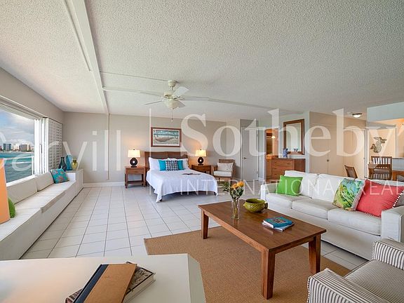 Gold Coast living at its absolute finest! This Colony Surf 1BR/1BA is an oceanfront gem with one of the most picturesque views of the South Shore. Kick your feet up on the window seat overlooking the Pacific blue. Watch the surf, sea life, and sailboats as you relax with a nice beverage. Enjoy refreshing morning swims or jogs around Kapiolani Park or Diamond Head. The unit is fully furnished with everything you need. Just move right in, it's all ready for you! Dishwasher, gas stove, oven (broiler function does not work), washer/dryer, Queen bed, dining table with 4 rattan dining chairs, lots of closet space, 1 parking stall. Very open, bright, quiet and breezy. This is one of the rare units in the Colony Surf that has an extra alcove with 2 twin beds, so the unit can easily sleep four and accommodate guests. Colony Surf is located on the Diamond Head end of Kapiolani Park, just a 5 minute drive to Kahala, a few minutes drive to great shops and eateries on Monsarratt, and walking distance to Waikiki. It couldn't get more tranquil and convenient than this in Honolulu. AVAILABILITY: (1 month minimum) April 15, 2025 - June 30, 2025 and August 1, 2025 - October 31, 2025. Reviews: "I would highly recommend staying at this property if given the chance. As an architecture student I was very impressed with the building as a whole and this unit specifically. First, it has a huge entry hall, something extremely useful for beach days. At the end of the unusual hall there are two daybeds, sitting at 90 degree angles to each other. I've never seen a space like it, great for families and awesome for reading. The main space was breathtaking, it is very simple, all white with wooden furniture, white marble counters, and white louvers covering the whole southern wall. It also has a mirror on the adjacent wall, making the already generous space look huge, and when the louvers are open the mirror reflects the ocean making it feel like you are surrounded; The view is definitely the focus of the unit, with a full length bench running the length of the window. I would wake up and watch the ocean undulate for hours. If i didn't feel like getting sun at the beach i would open up the windows and watch the water. if you've never seen the ocean from 11 stories up, you really should treat yourself, there is nothing like it. You can watch a single wave 400 feet away roll in, almost standing still, the whole thing is like a slow moving painting. As for functional systems, there is a large tv on the wall, washer and dryer, and a dishwasher. It is a studio but seems like it could sleep 4. It would be a great romantic get away. It was also nice to be alone in, I got lots of work done and there was always the ocean to keep my attention during breaks." -August 2021 "What a fabulous location--oceanfront and close to all the action of Waikiki. We could see sea turtles and the endangered monk seal from our unit. We stay at the Moana Surfrider several times a year, but combined family, business, and R & R with stay at Colony Surf. The wifi worked great and the unit had plenty of linens, beach toys and chairs for our visits around the island. We hope to return again! Mahalo for a wonderful holiday!" -October 2019 AVAILABILITY: (1 month minimum) Available April 15, 2025 - June 30, 2025 and August 1, 2025 - October 31, 2025. MONTHLY RATE: $4900 per month plus 14.962% Tax $1000 Security Deposit. $250 Cleaning Fee Rent includes electric, water, cable, and internet. No smoking, no pets. 1 parking stall included.