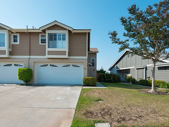 Wonderful twin-home property that feels like a single family! Rare 2-Unit bldg w/ full size 2-car driveway and 2-car garage, large front yard & only one shared wall. Located at the end of a cul-de-sac in the desirable The Cape community of Calavera Hills. Panoramic canyon views & distant ocean views. No rear neighbors. Upgraded counter tops, beautiful cabinetry, crown molding, shutters, new wood floors, custom paint, AC & more. Community pool, spa & park. Walk to Calaveras park. Carlsbad schools!