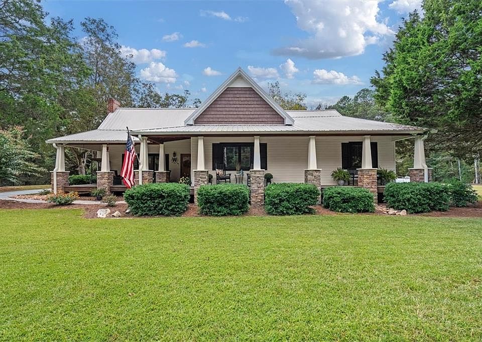 This 5-bedroom, 3-bath Southern farmhouse, sitting on almost 8 acres, has been completely transformed, blending 1900s charm with modern convenience. Every detail has been updated, including all new interior doors, a new back deck, a covered front porch with stone accents, a solid wood front door, a replaced gas and septic system and lines, 4 total fireplaces with 3 new electric inserts and one wood burning fireplace. Even a new concrete driveway, the upgrades go on and on. Step inside to a spacious main living area where natural light pours in through the brand-new windows, highlighting the fresh paint, updated finishes, and timeless farmhouse character. The flow leads seamlessly into the kitchen, fully updated with modern hardware, tile, and thoughtful details, including a wine fridge that makes it both functional and stylish, perfect for gathering around meals or entertaining with ease. Just beyond, the sunroom offers a cozy retreat where you can sip morning coffee or unwind in the evenings while overlooking the property's sprawling acreage. With windows all around, it feels like the outdoors are part of your living space year-round. An oversized two-car garage with extra depth provides plenty of room for vehicles, storage, or even a boat. Above the garage, you'll find a thoughtfully designed additional living space complete with a spacious living room/ office, bedroom, and full bath. Whether you need a home office setup, a guest suite, or a retreat for a college student or in-law, this versatile space offers endless possibilities. This is truly a timeless farmhouse with a fresh new story ready for its next chapter.