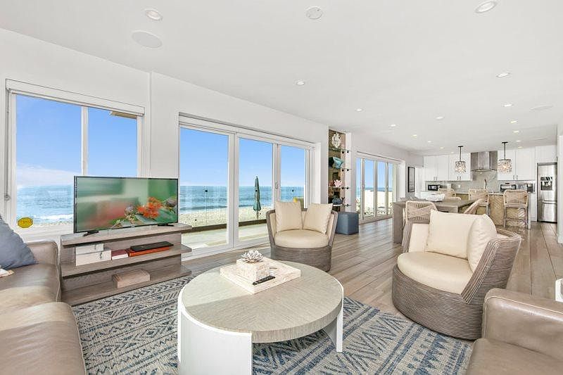 Our newly renovated 3 bedroom, 2 bathroom with panoramic ocean view, all while being situated right on the Sand! This unit is absolutely stunning. This unit was created with an open concept kitchen with a gorgeous island that will let you enjoy the ocean, while preparing your favorite meals. Luxurious furniture and exquisite design. This unit comes with an exclusive 2 level terrace/deck, that provides a private BBQ, 3 separate sitting/lounge areas-- all while situated right on the sand. Owner pays for gas, electric, water, trash, internet. No smoking permitted. Small dogs up to 20 pounds permitted. The Sand unit take up all of the first floor of this building. To access the unit 2 flights of stairs must be taken. No elevator on property.
