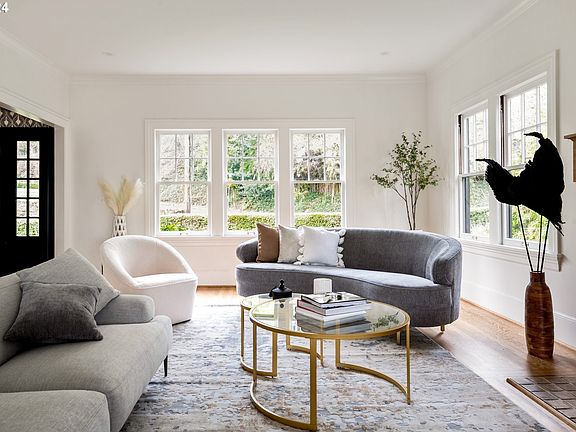 OPEN HOUSE CANCELLED - OFFER ACCEPTED. Introducing one of the most extraordinary homes to be offered in Portland. This meticulously renovated English-style residence seamlessly blends contemporary design with timeless charm and luxe amenities. Featuring 5 bedrooms, 4.5 bathrooms, and versatile bonus spaces, she truly accommodates every lifestyle. The entertainer's dream kitchen is stocked with high-end appliances, custom cabinets, a butler's pantry, and a built-in bar. The second floor showcases a luxurious primary suite, a laundry room, generous bedrooms, and stylishly curated bathrooms. The top floor offers two versatile rooms with stunning views, an additional bathroom, and attic space. The basement, with its high ceilings, provides a functional family room and office/studio space. The separate exterior entry lends potential for an ADU or multi-generational living. Covered patios with dramatic city and mountain views are idyllic for either entertaining or relaxing. Excellent schools and proximity to numerous hiking / running trails complete this rare find. [Home Energy Score = 4. HES Report at https://rpt.greenbuildingregistry.com/hes/OR10200443]