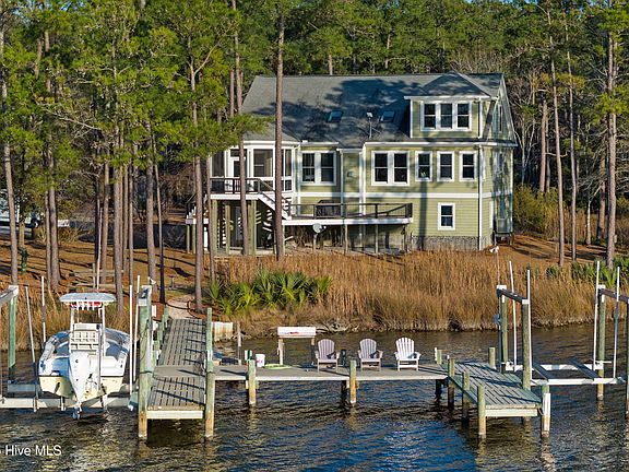 Experience the very best of waterfront living with this luxury property, gracefully set on 3.76 acres of meticulously landscaped grounds. From the moment you enter into the open foyer, you're welcomed by a sense of space, light, and timeless craftsmanship that carries throughout the home. The light-filled great room captures sweeping water views through expansive windows, enhanced by cathedral ceilings, skylights, a gas log fireplace, and gleaming hardwood floors. The split floor plan offers both privacy and flow, creating the perfect layout for everyday living and entertaining. The chef's kitchen is a true showpiece—featuring custom cabinetry, quartz countertops, a Bertazzoni commercial gas range, GE Profile convection wall oven, and a spacious walk-in pantry. Whether hosting or cooking for two, this space combines style and function with ease. Wake up to breathtaking views in the primary suite, complete with a spa-like ensuite bathroom showcasing a soaking tub, double vanity, and beautifully tiled walk-in shower. A large walk-in closet with built-in shelving provides generous storage. Two additional main-floor bedrooms share a private full bath. Upstairs, the expansive 32' x 13.5' bonus room and guest suite along with a private bath offer endless possibilities for family, visitors, or a creative retreat. Head outside to discover the best of outdoor living—a multi-level deck overlooking serene waters, 220 feet of waterfront, and an 800-square-foot concrete pier with two boat lifts (7,000 lb. and 16,000 lb.). Additional highlights include a 2,000-square-foot walk-out basement, parking for three vehicles, a Kinetico water softener, reverse osmosis system, and a Kohler 20k generator for added peace of mind. Per the owner, the property has never flooded, and current flood insurance is under $700 per year. This home—is a lifestyle defined by tranquility, elegance, and connection to the water. Make your appointment today!