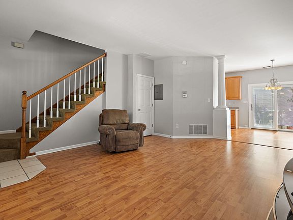 Welcome to this freshly painted, 2 bedroom, 1.5 bath townhome in Park Place Townhomes at 2896 Cambridge Way in Highland! Step into the living room with 9 foot ceilings, laminate wood flooring and large windows for ample natural light. Step through to the kitchen with extra cabinetry and eat-in dining area with stainless steel appliances. Off the kitchen is the half bathroom for your convenience. Upstairs is two bedrooms and a full, jack and jill bathroom. The spacious main bedroom is carpeted and has his and hers walk in closets. The generous sized second bedroom is also carpeted. Both connect to the full bathroom with a large vanity area and a closet that contains the washer and dryer utility area. Outside is a private, fully enclosed, patio area, with just a few steps to the large 2.5 car garage, providing privacy and security. The garage is located off a paved alleyway in the community. All of this provided with the association taking care of the grounds, giving you more time to enjoy your home, and the walking trail that runs behind the community, the park across the street that holds multiple festivals throughout the year, and downtown Highland and its many amenities. The home is also located close to the highway, providing easy access for commuters, and a new train station opening later in 2025 for additional transportation options. Hurry before this one is gone!