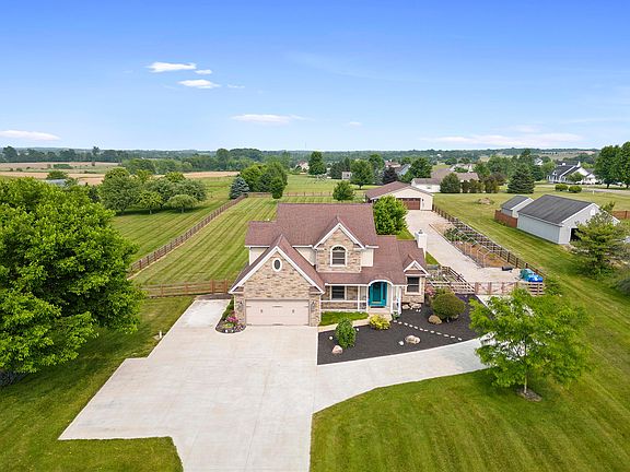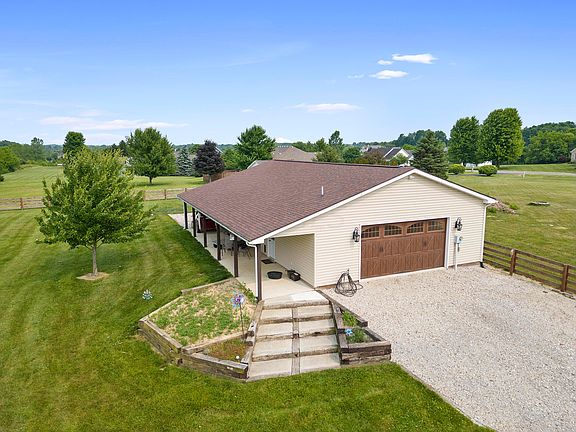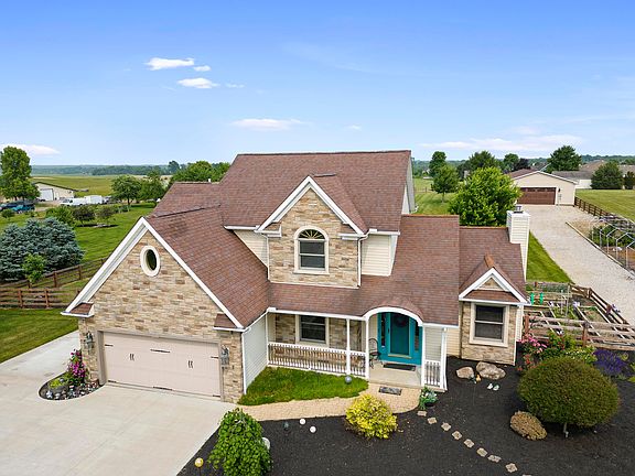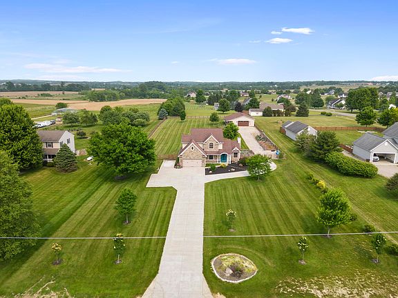 Welcome to Rush Creek Estates! This stunning three-bedroom home sits on a 1.5-acre lot with a picturesque country setting, yet remains conveniently close to town. The family room is filled with natural light, boasting a vaulted ceiling, recessed lighting, and a cozy wood burning fireplace. The gourmet kitchen features a tile backsplash and ample cabinet and counter space. The owner's suite includes a private bath, and the outdoor living space offers a deck and a stamped concrete patio. The lower level is finished, adding extra versatility to the home.