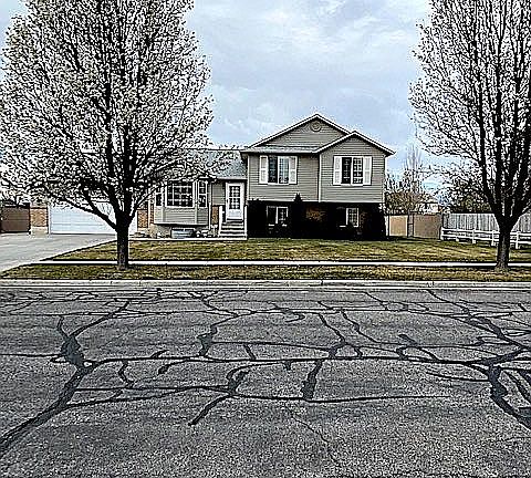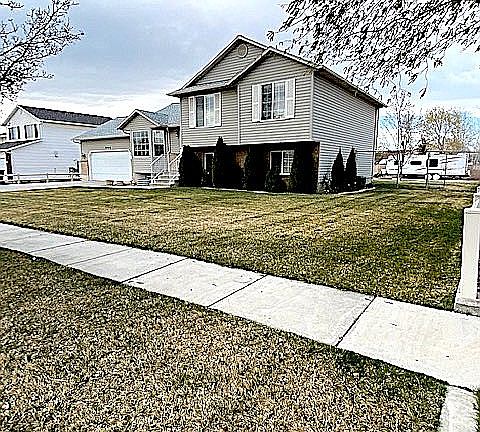 This beautiful four-level house is located in a friendly Clinton, Utah neighborhood just behind West Clinton Elementary School. It features a large master bedroom suite on the upper level with a vaulted ceiling, dual vanity sinks, a private toilet, and a bathtub separate from the shower. Two other bedrooms and a full bath are also located on the upper level. The main level also has vaulted ceilings and has the living/dining room area and the kitchen with entry from the garage. A reverse osmosis water filter provides wonderfully tasting water to the refrigerator and a spigot at the sink. The third level has a large family room with surround-sound speakers wired into the ceiling. It also has a bedroom, half bath, and a large laundry room. The lower level features a sewing/craft/office room with wall cabinets and a full-length shelf; the mechanical room holds a new furnace as of October 2020, a water softener, and room for storage. There is also a large unfinished fifth bedroom on this level. The home received a new roof in November of 2020 and it also has a security system monitored by Mountain Alarm Company. The garage has two wire ceiling racks, a full ceiling shelf across the garage door, an attic access with a pull-down ladder, and wall cabinets for plenty of storage. There is also a work bench for the handyman. The yard has an automatic sprinkler system, fenced back yard, a covered patio, a firepit surrounded by a safety zone of sand, and fully-paid lawn treatments for the rest of 2021!