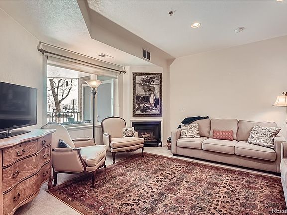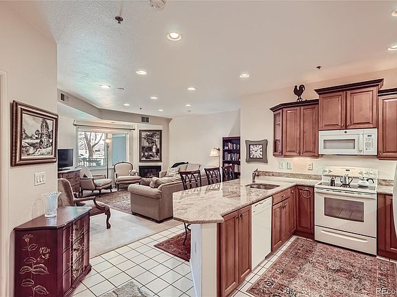 This secured building is in an exclusive 55+ independent living complex. There are no steps to climb and an elevator to access the parking garage. This gorgeous two-bedroom, two-bathroom condo is turnkey. The gourmet kitchen has plenty of room for serving family and guests. The kitchen offers custom cabinets, granite countertops, and a tile floor. This luxurious living space provides a very open, warm, inviting floor plan. The kitchen is open to the spacious living area with a gas fireplace, picture window, and a patio door. Enjoy the oversized master bedroom, walk-in closet, and bathroom with a walk-in shower. The second bedroom would make a nice dining area, cozy home office, or guest room with a full bathroom. A laundry room offers a full-size side-by-side newer washer and dryer. Underground parking is provided with a storage unit. A lobby for you and your guests to enjoy. This community offers a clubhouse of 12000 sq. ft. community facility- a spa-billiards room - an outdoor pool, a sauna and hot tub, banquet rooms, a fully equipped fitness facility, a charming lounge, and monthly activities. A distinctive lifestyle community that's maintenance-free. Walking distance to restaurants, the Platte River, stores and old town Littleton, light rail, and centrally located to other areas. Please visit www.live-in-riverwalk.com for more details about Riverwalk.
